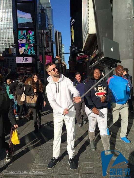 可惜MacBook自拍桿是非賣品,由Moises (Art404) 、 John Yuyi跟Tom Galle三位藝術(shù)家制作,并走到鬧市中拍攝名為“MACBOOK SELFIE STICK”的藝術(shù)項(xiàng)目,用夸張化自拍工具的幽默方式、諷刺那些不論在何時(shí)何地都沉迷自拍﹙和使用自拍桿﹚的人。