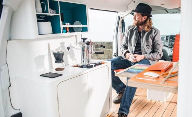 原本平平無(wú)奇的電動(dòng)貨 Van,經(jīng)過(guò)改裝后搖身一變就成為充滿未來(lái)感的辦公室,裡面有舒適的個(gè)人工作空間,配備有可摺迭的桌子,上面有觸控式的 HP 電腦、無(wú)線充電器、藍(lán)牙揚(yáng)聲器,這個(gè)辦公室的 LED 燈光以遙控開關(guān)和控制。就連辦公室都有啲茶水間,e-NV200 WORKSPACe 亦不缺,車廂內(nèi)有微型雪柜和咖啡機(jī)。